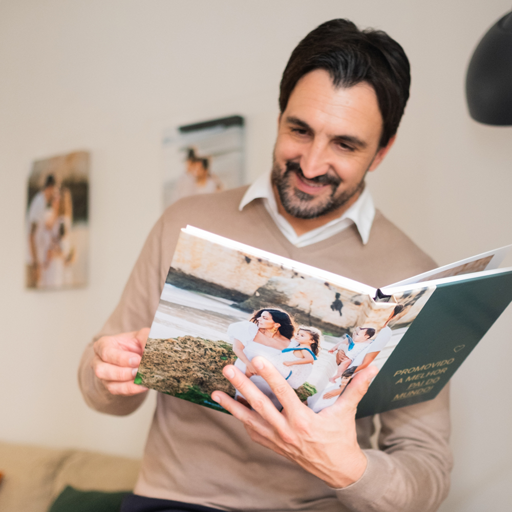 Encontrar prendas para o Dia do Pai pode ser um verdadeiro desafio. Queremos sempre escolher algo especial, que vá além do comum e que tenha um significado real. No entanto, entre tantas opções de prendas para homem, muitas vezes acabamos por recorrer a soluções tradicionais como um perfume, um relógio ou um porta-chaves. Mas este ano, porque não celebrar o dia de uma forma mais autêntica, com um presente que conta uma história? Um álbum de fotos é muito mais do que um simples objeto. É um registo das vossas melhores memórias, uma coleção de momentos felizes que ele poderá revisitar sempre que quiser. Seja para recordar a infância, reviver aventuras em família ou simplesmente guardar aquelas fotografias especiais que captam a vossa relação, este é o melhor presente para emocionar o melhor pai. Se procuras presentes originais para oferecer no dia 19 de março, um álbum de fotos pode ser exatamente aquilo que precisas. Enquanto outras prendas se desgastam ou ficam esquecidas numa gaveta, um álbum de fotos ganha cada vez mais valor com o tempo. Ao escolher um álbum para oferecer no Dia do Pai, não estás apenas a dar um presente, estás a criar algo que ele poderá folhear todos os dias, sempre que quiser relembrar os momentos felizes que viveram juntos. E não importa se as fotos são antigas ou recentes – cada página será uma forma de reforçar o carinho e a ligação entre vocês. Cada pai é único, e a nossa coleção de álbuns reflete essa diversidade. Se procuras a melhor prenda para um pai aventureiro, que adora viajar e explorar o mundo, um álbum cheio de fotos de momentos especiais será a escolha perfeita. Se o teu pai é mais nostálgico, podes optar por um design clássico e encher as páginas com recordações da infância, fotos de família e pequenos textos personalizados. Os nossos álbuns vêm em vários tamanhos, formatos e estilos para que possas escolher a opção que melhor se adapta ao teu pai. Seja um modelo elegante e minimalista ou algo mais criativo e colorido, garantimos que encontras um álbum à altura da relação especial que partilham. Se procuras sugestões de presentes, esta é uma opção que nunca falha. O que torna um presente verdadeiramente especial? O carinho e o pensamento que colocamos nele. E é exatamente isso que um álbum personalizado oferece: a possibilidade de criar algo único, feito exclusivamente para o teu pai. Se procuras ideias de prendas que combinem emoção e originalidade, um álbum de fotos é a escolha perfeita. É um presente que não se esquece, que não perde valor e que pode ser revisitado sempre que o teu pai quiser recordar os melhores momentos da vossa vida juntos. Se este ano queres oferecer no Dia do Pai um presente que realmente emociona, um álbum fotográfico é a melhor escolha. Ao invés de um presente convencional, opta por algo que ele possa folhear, reviver e valorizar para sempre. Com a nossa coleção variada, encontras o álbum ideal para criar uma prenda única e inesquecível. No meio de tantas opções de dia do pai presentes, esta é a forma perfeita de dizer "Obrigado" e mostrar o quanto ele significa para ti.